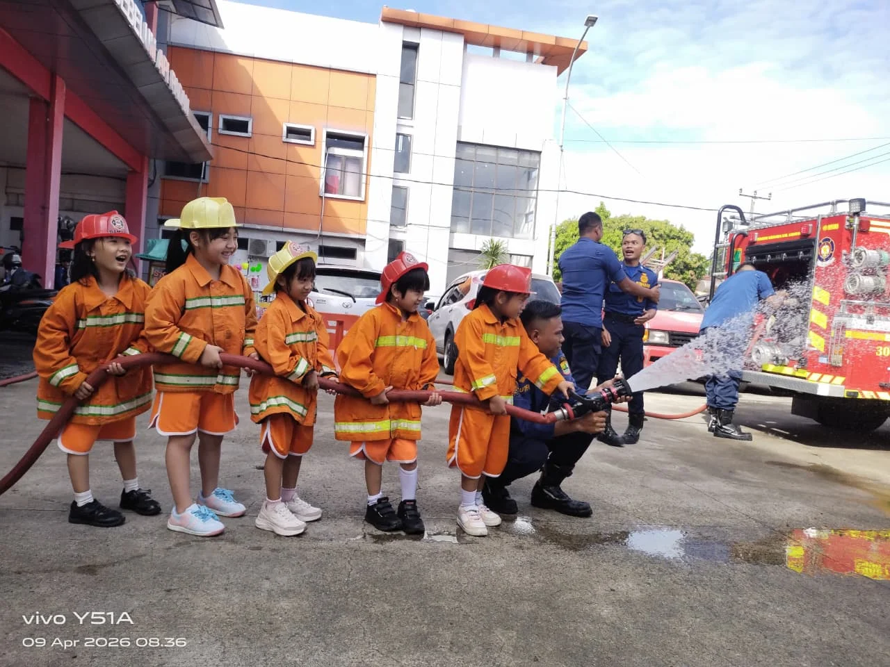 Setibanya di lokasi, anak-anak disambut dengan hangat oleh para petugas pemadam kebakaran. Mereka diperkenalkan dengan berbagai macam peralatan pemadam kebakaran seperti selang air, helm, baju pelindung, hingga mobil pemadam kebakaran. Anak-anak tampak antusias saat melihat secara langsung kendaraan besar yang biasa digunakan untuk memadamkan api.