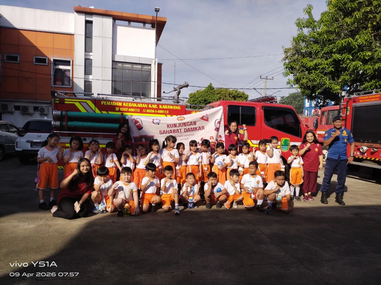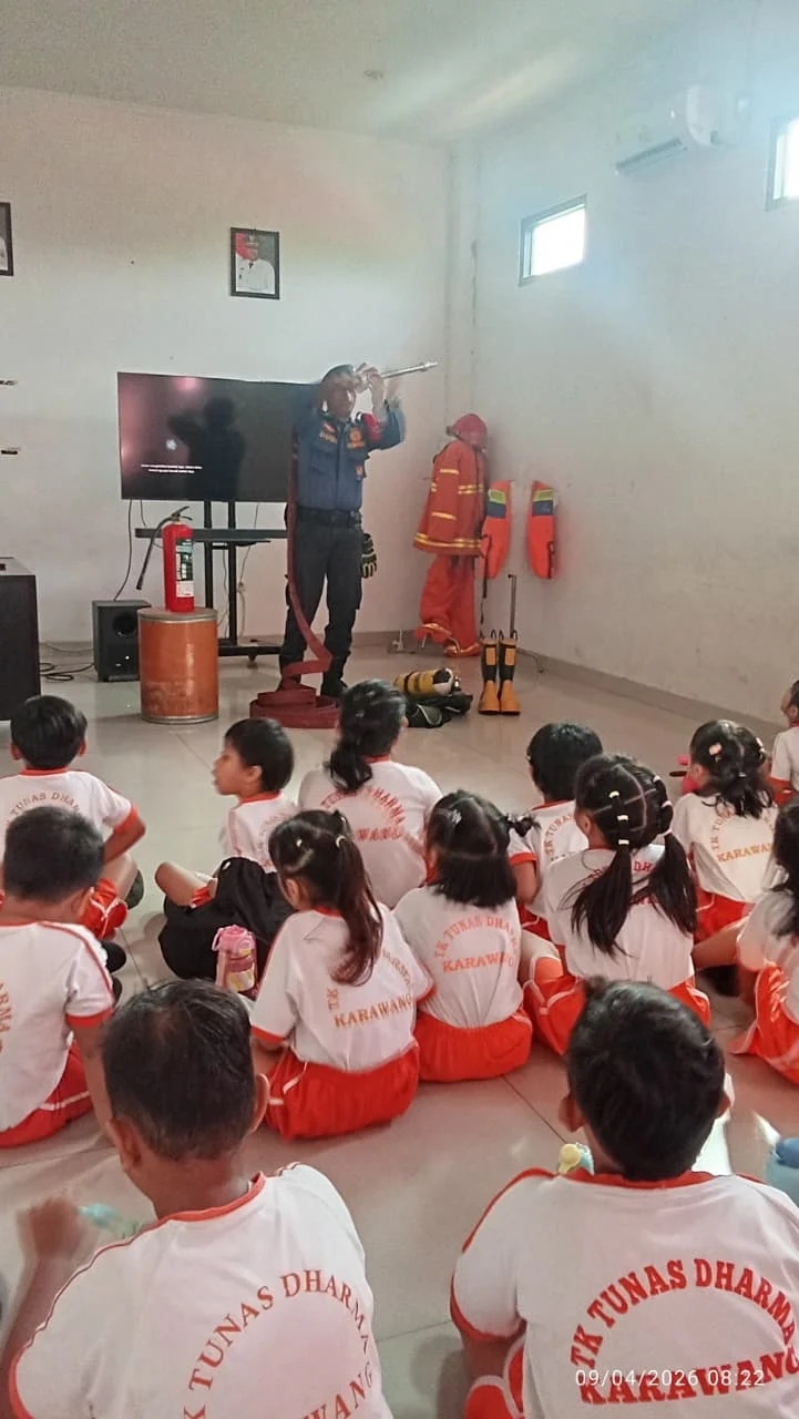 Pada hari Kamis tanggal 9 April 2026, anak-anak TK Tunas Dharma mengikuti kegiatan kunjungan edukatif ke kantor Pemadam Kebakaran Kabupaten Karawang, dengan tema KUNJUNGAN SAHABAT DAMKAR. Kegiatan ini bertujuan untuk mengenalkan profesi petugas pemadam kebakaran sekaligus menanamkan nilai keberanian, kepedulian, dan keselamatan sejak usia dini.