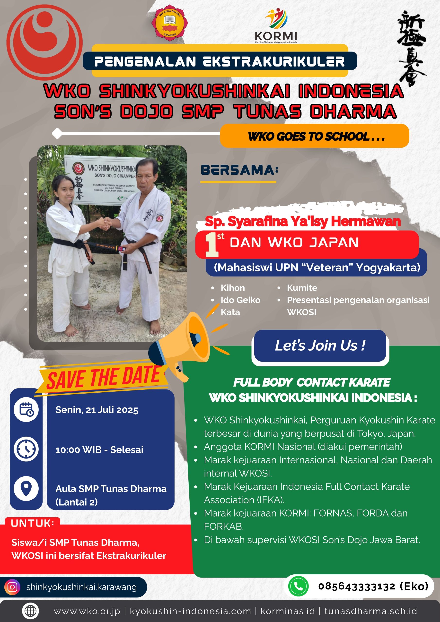 Mari bergabung bersama WKO Shinkyokushinkai Indonesia, untuk membentuk karakter tangguh dan mental petarung Kyokushin Karate, menuju prestasi unggul siswa SMP