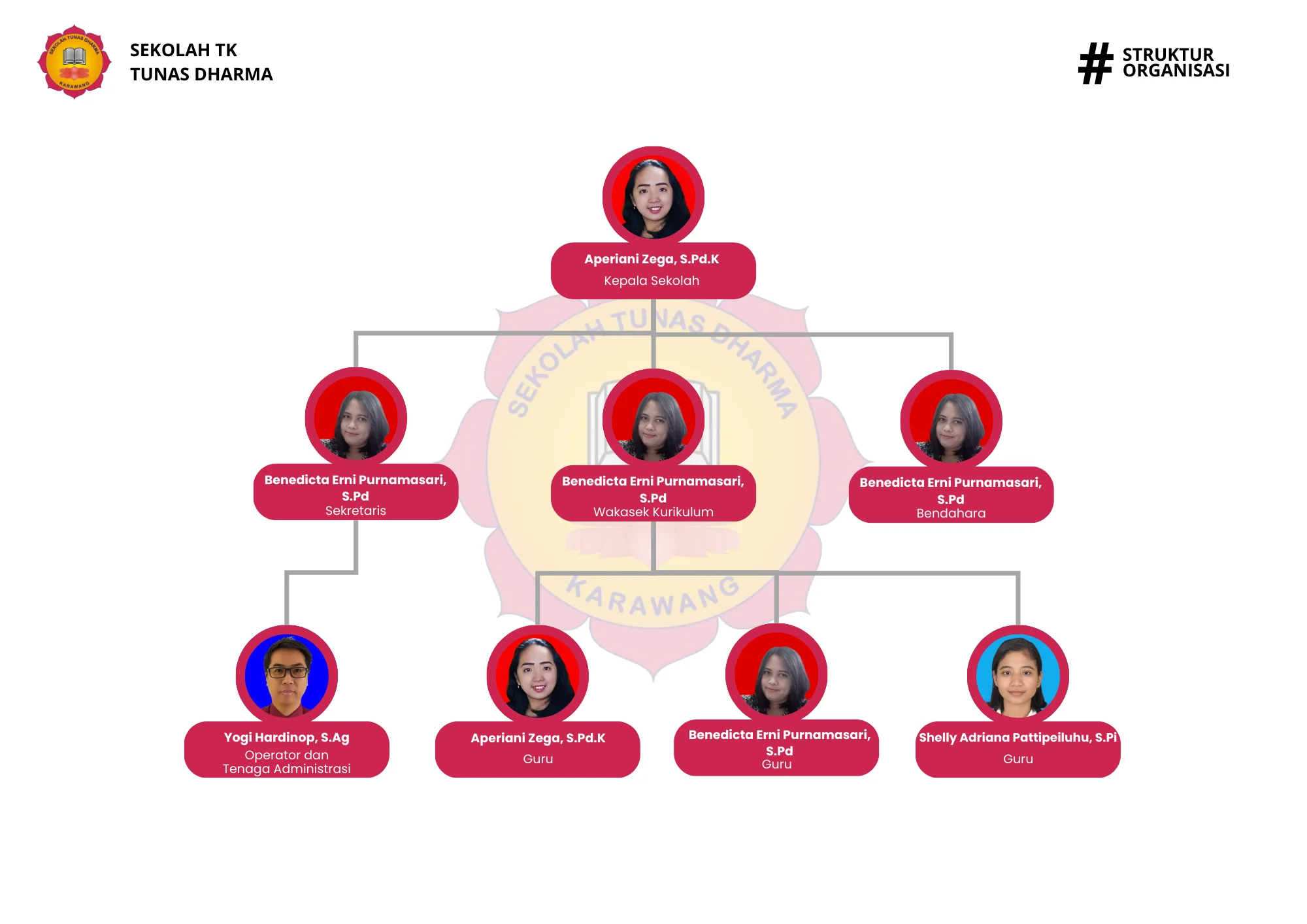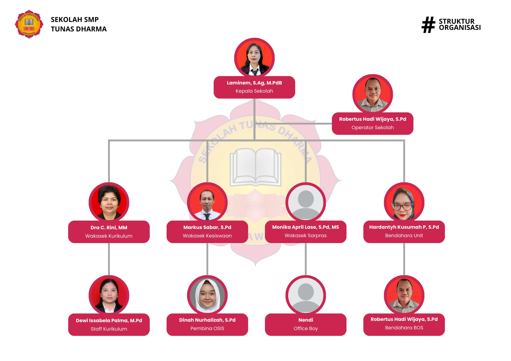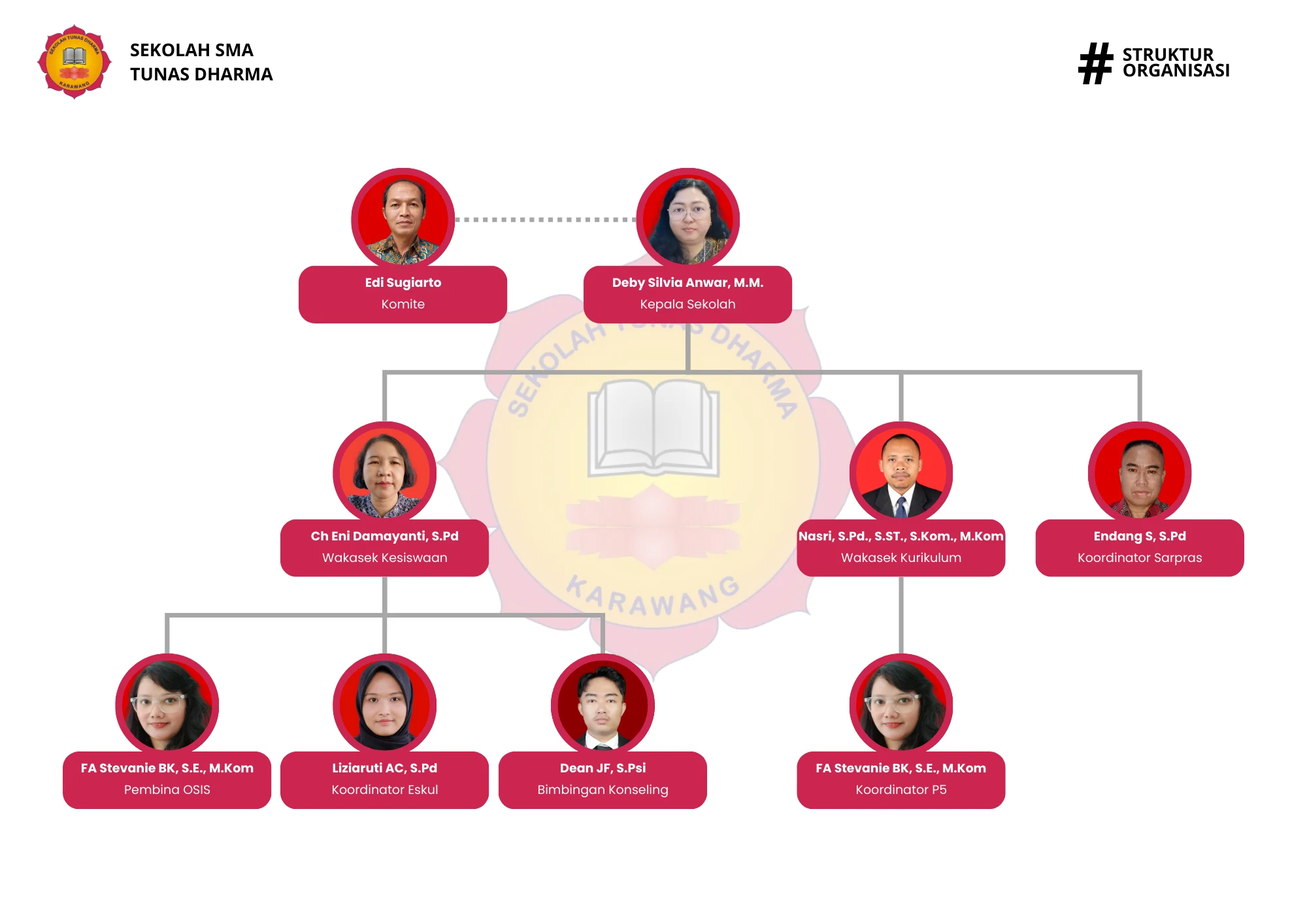 Struktur organisasi sekolah disusun untuk memberikan gambaran yang jelas mengenai peran, tanggung jawab, dan alur koordinasi di lingkungan sekolah. Susunan ini membantu memastikan setiap bagian dapat menjalankan fungsi manajemen pendidikan secara efektif dan selaras dengan visi serta misi sekolah.